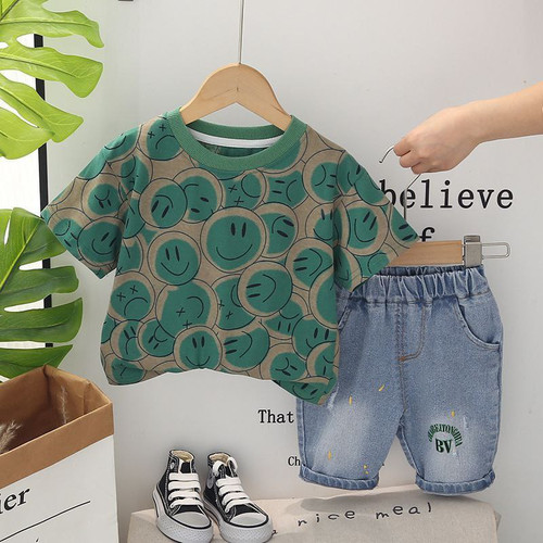 ست تیشرت و شلوارک جین وارداتی طرح ایموجی