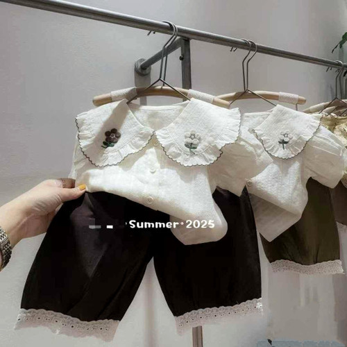 ست دخترانه وارداتی (شومیز نخی خامهدوزی و شورتک کتان)