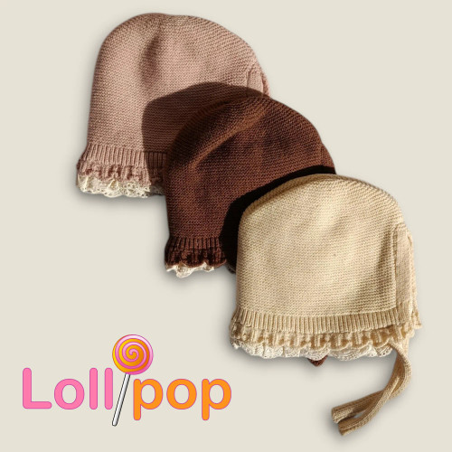 کلاه بافت دخترانه لبه دانتل دوزی وارداتی – مناسب ۱ تا ۲ سال