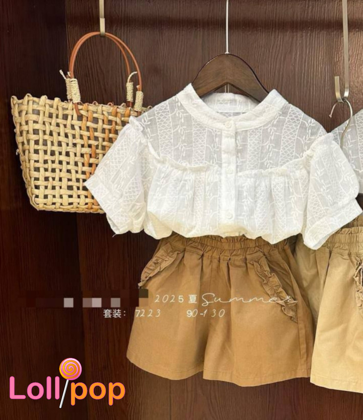 ست دخترانه وارداتی (شومیز نخی خامهدوزی و شورتک کتان)