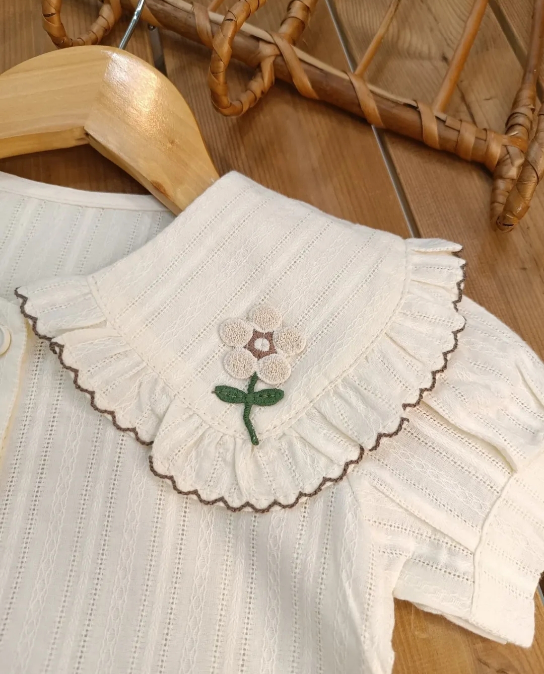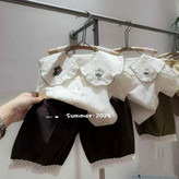ست شومیز و شلوارک دخترانه وارداتی طرح گل‌دوزی