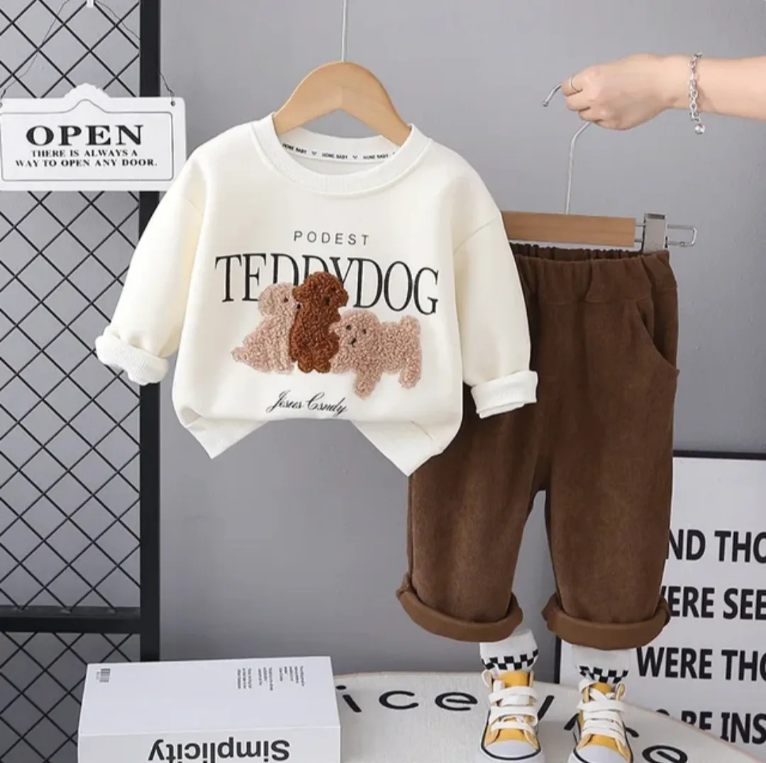 ست دورس و شلوار بچگانه مدل TeddyDog | بلوز دورس و شلوار کبریتی مناسب ۲ تا ۶ سال