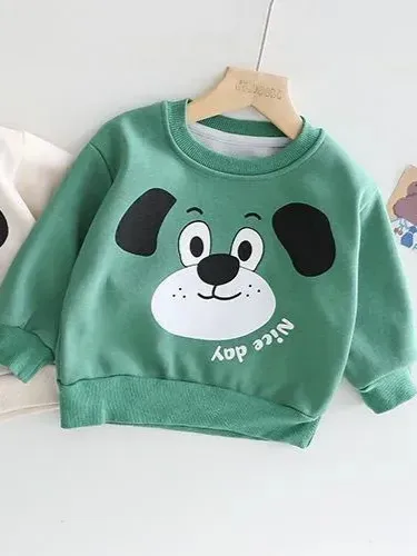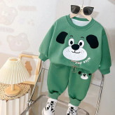 ست بچگانه وارداتی نخی مدل NiceDay | بلوز و شلوار سبز با طرح سگ کارتونی مناسب ۲ تا ۵ سال